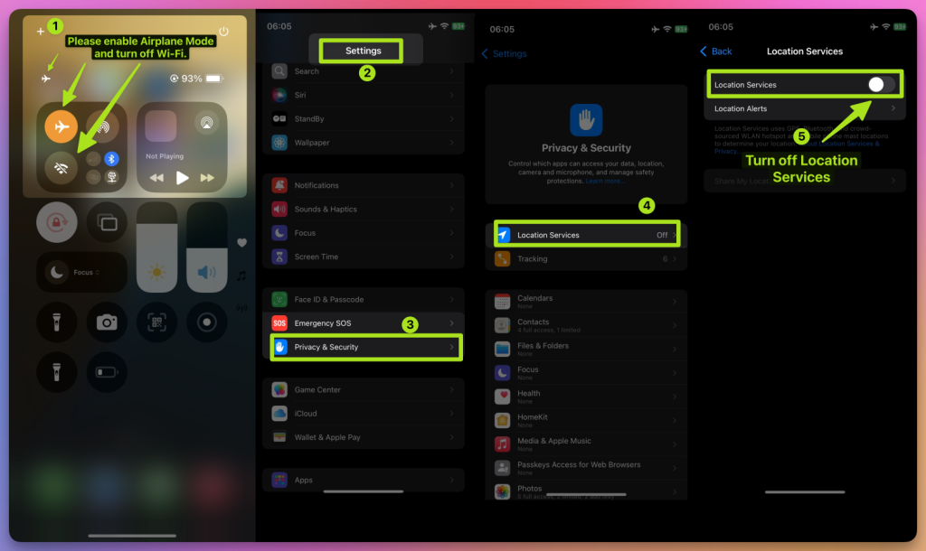 - During the spoofing process, please keep Airplane Mode enabled and cellular data turned off on your iPhone.
