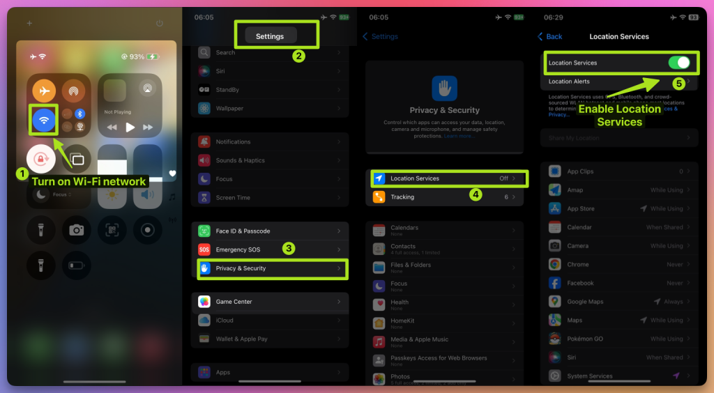 6. Go back to Privacy & Security > Location Services, enable Location Services